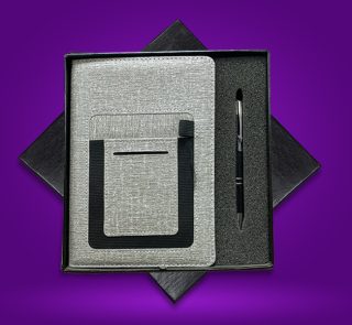 BO-03 | بوكس نوت بوك رصاصي + قلم معدن