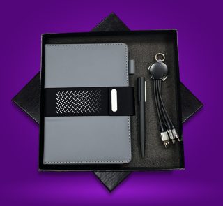 BO-12 | بوكس نوت فضي + قلم + وصلة مضيئة